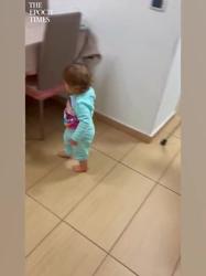 다리 다친 아빠 도와주는 아기