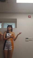 둔신 이아린 흰 블라우스 위에 하네스끈 빨간 돌핀팬츠