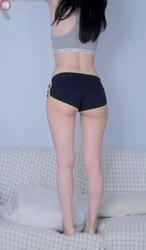 노란 테두리의 검정 돌핀팬츠 엉밑살 + 회색 CK 브라 이아린