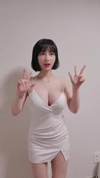빨간 하네스 원피스 + 화이트 슬립 입은 문월 레전드 가슴골
