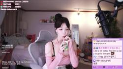 [겨우디] 팔 올리니 핑크티가 올라가서 검정 브라 노출