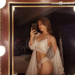 [명아츄] 단추 푼 흰셔츠 속 남색 레이스브라 가슴골