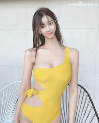 빨간 가죽홀터넥 의상 속이 꽉 들어찬 한갱 알가슴골 노출