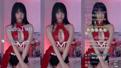 빨간 가죽홀터넥 의상 속이 꽉 들어찬 한갱 알가슴골 노출
