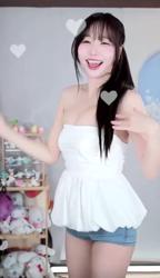 모델 주빈 화이트 브라렛 가슴골 가죽 치마 쩍벌 안경녀
