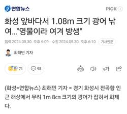 화성 앞바다서 1.08m 크기 광어 낚여 ㄷㄷ