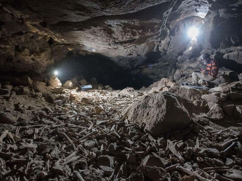 연구를 위해 팀은 동굴에서 회수된 1,917개의 뼈와 치아를 분석했다. 이 샘플 중 일부는 방사성탄소 연대측정 결과 나이는 약 439~6,839년으로 밝혀졌으며, 이는 논문에 따르면 육식동물이 동굴을 오래 사용했음을 뜻한다. 줄무늬 하이에나의 오랜 식량창고