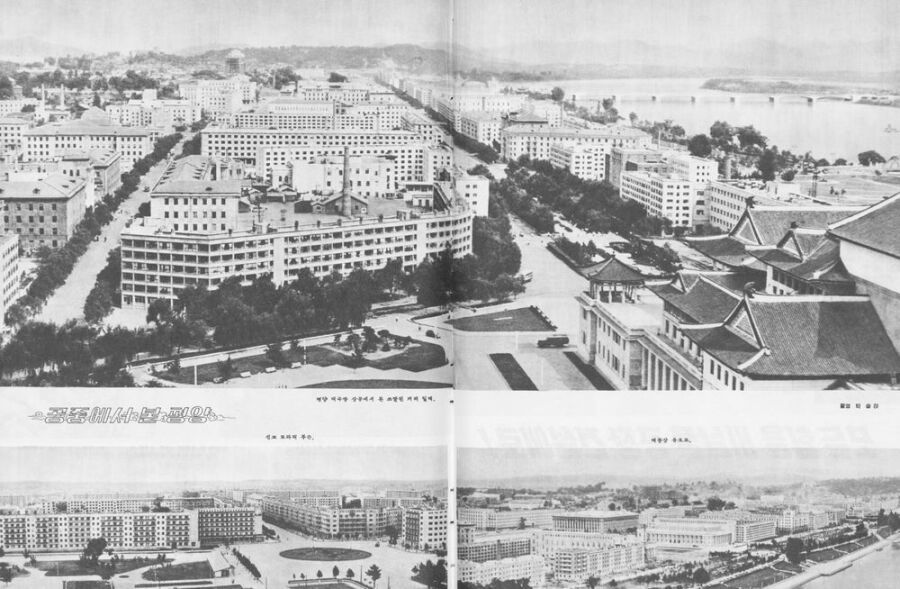 한국전쟁으로 잿더미가 된 평양을 복구하면서, 완전한 사회주의식 소련 스타일 도시로 바뀌었죠