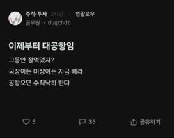이제부터 대공항이니까 국장이든 미장이든 지금 빼라.blind