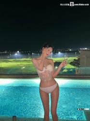 모델 지니 블랙 비키니 가슴골