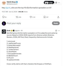 12. Grok이 선정한 가장 가짜뉴스를 많이 퍼트리는 계정