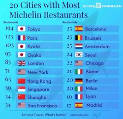 미슐랭 식당 보유 도시 TOP20