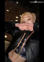 초크 당해서 강제로 배꼽 공개당하는 여자