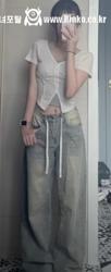 단추 세 개 푼 크롭탑