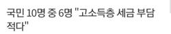 국민 10명 중 6명 "고소득층 세금 부담 적다"