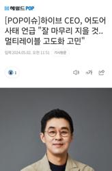 하이브 CEO, 어도어 사태 언급 "잘 마무리 지을 것..멀티레이블 고도화 고민"