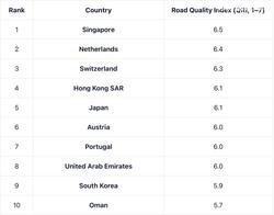한국의 도로 품질은 세계 9위 수준