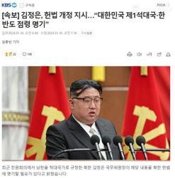 [속보] 김정은, 헌법 개정 지시…“대한민국 제1적대국·한반도 점령 명기”