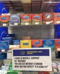 유럽 콘돔 선반에 있는 문구