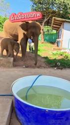 물통을 보자마자 달려드는 아기 코끼리
