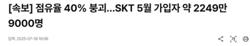 [속보] 점유율 40% 붕괴…SKT 5월 가입자 약 2249만9000명