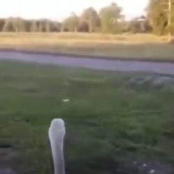 주인 반기는 거위(소리있음)
