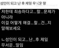 성인이 되고 난 후 제일 무섭다는 말
