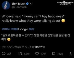 일론 머스크 "돈으로 행복을 살 수 없다는 말은 옳은 말"