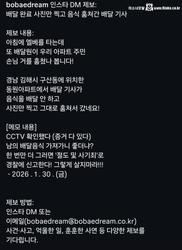 배달 음식 훔친 배달기사에게 경고문