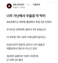 너무 가난해서 우울증약 먹는다는 한 블라인