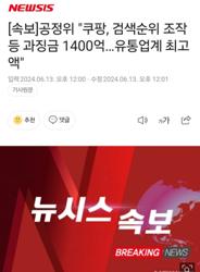 [속보]공정위 "쿠팡, 검색순위 조작 등 과징금 1400억…유통업계 최고액"