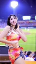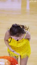박수 유도하는 치어리더 이주은 산타 체크의상 가슴골