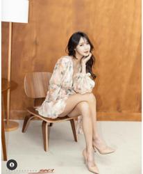 가슴골 오픈한 하늘색 셔츠 +흰 초미니 오피스룩 유치