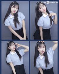 하늘색 레이스 슬립 숙이면서 흔드는 거대한 가슴골 BJ 지현잉