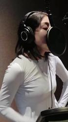 녹음하는 흰티 트와이스 지효