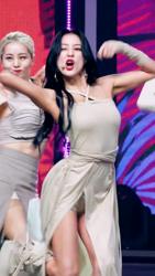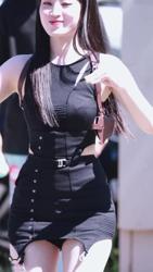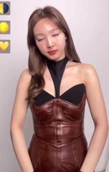 크롭 민소매 숙인 가슴골 갈라진 허벅지 트와이스 지효