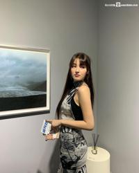 너무 얇아 속이 비치는 홀터넥 오프솔더 티셔츠 청치마 프로미스나인 이채영