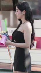 크롭 시폰 의상 청바지핏 개미허리 배꼽 노출 오마이걸 유빈