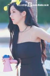 민소매 블랙 원피스 허벅지 끈 권은비