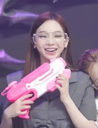 입에 물총 쏘는 시늉하는 카리나