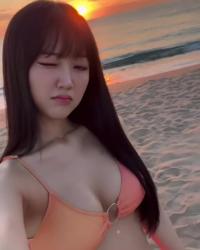 노을 배경으로 포즈 잡는 락킷걸 한이슬 비키니