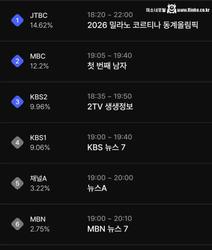 현재 올림픽 JTBC 실시간 시청률