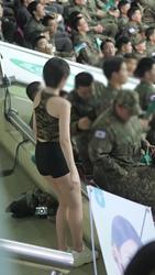 군인들과 사진 찍어주는 호감 치어리더
