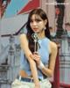 가슴골 오픈한 하늘색 셔츠 +흰 초미니 오피스룩 유치