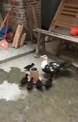 새끼 잡혀갈까 봐 발 동동 구르는 어미 오리