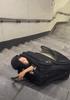 계단에서 캐리어 가방으로 실험을 진행한 여자
