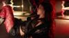 5. 뿔달린 동그란 가죽 레드 민소매 가슴골