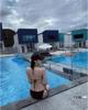 모델 하빈 블랙 모노키니 하이레그 아찔 몸매