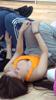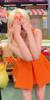 누워서 "보면 안돼!" 라고 말하는 ITZY 예지 주황색 민소매 가슴골