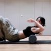 폼롤러로 근육 푸는 르세라핌 카즈하 복근